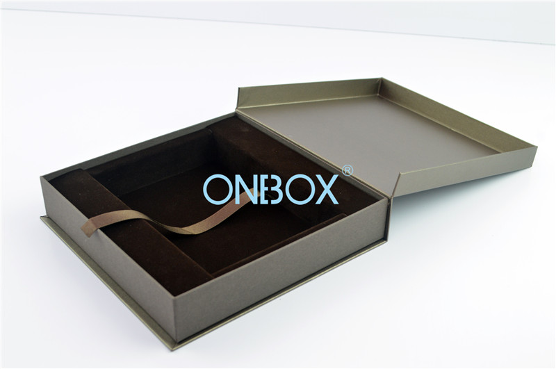 a. Cardboard folding box wrapped with brown art paper external , book shape design with folding lid ;
