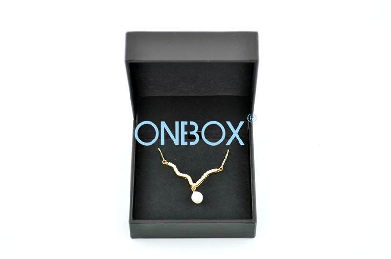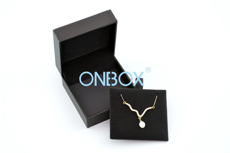 Competitive Small Necklace Box In Black PU , Seperated Insert Pad For Necklace , Custom Gold Foil Logo , Travel Box