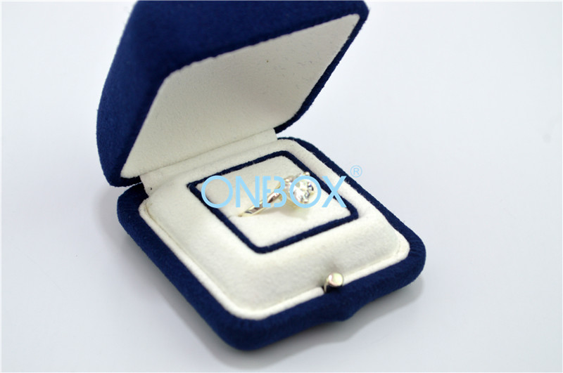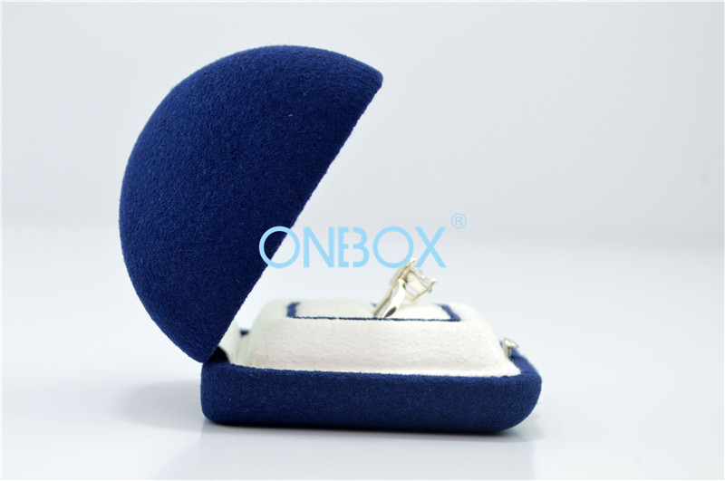【Design】The jewelry box with fashion navy blue velvet external , back hinge closure .