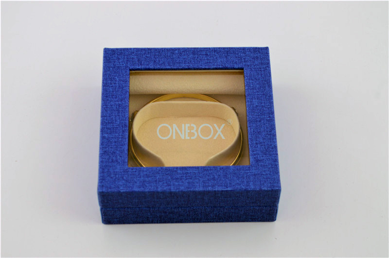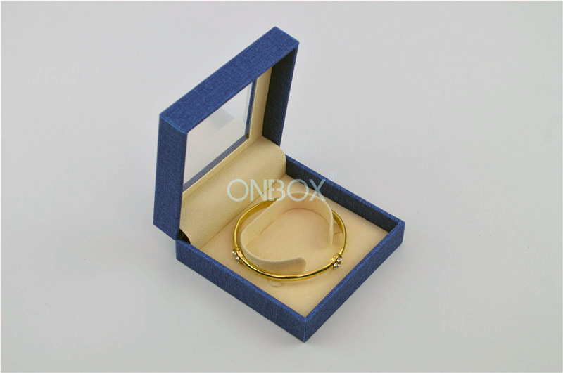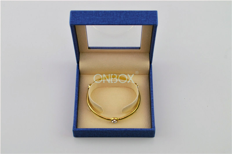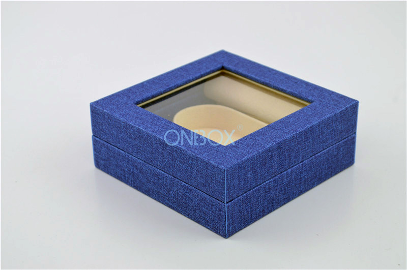 a. Customized design leather box for women bangle with Tiffany blue color jean pattern PU external , a high transparency PET window on top for displaying on shop ;