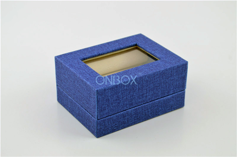 a. Latest design leather box for big finger ring / double rings with blue jean pattern PU external , a high transparency PET window on top for displaying on shop ;