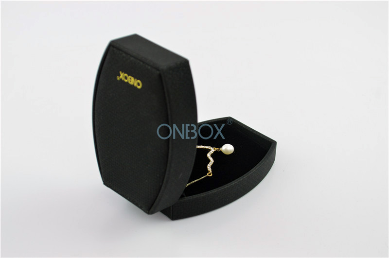 a. Luxury black leather box for lady necklace or pendant with luxury black PU external , unique design with top padding , custom logo available for top printing ;