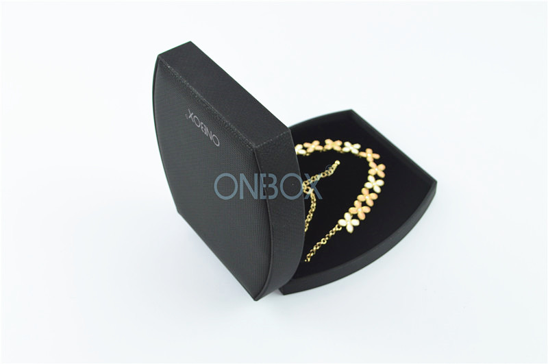 a. This is a latest luxury jewelry packaging box for lady's necklace , using for necklace storage or display in the shop , luxury black spotted PU which has really good sense of touch and with custom logo on the top ;