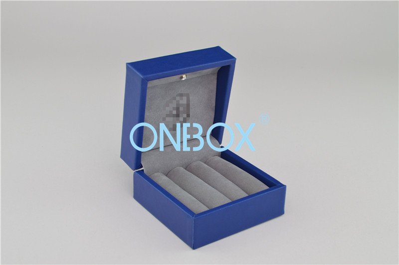 MDF box , blue PU leather , grey suede fabric lining |