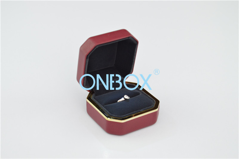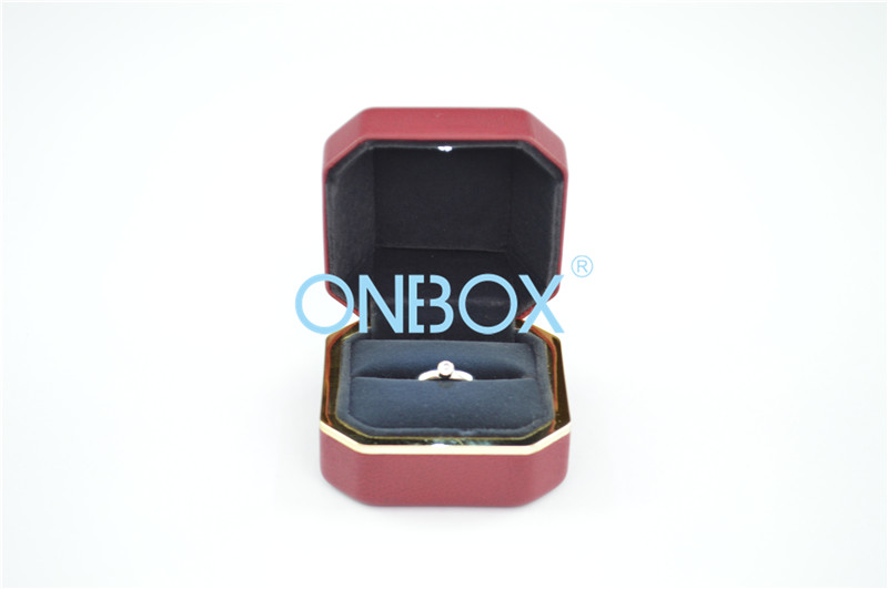 Wedding Engagement Single Ring presentation packaging boxes With LED Light In Dark Red PU