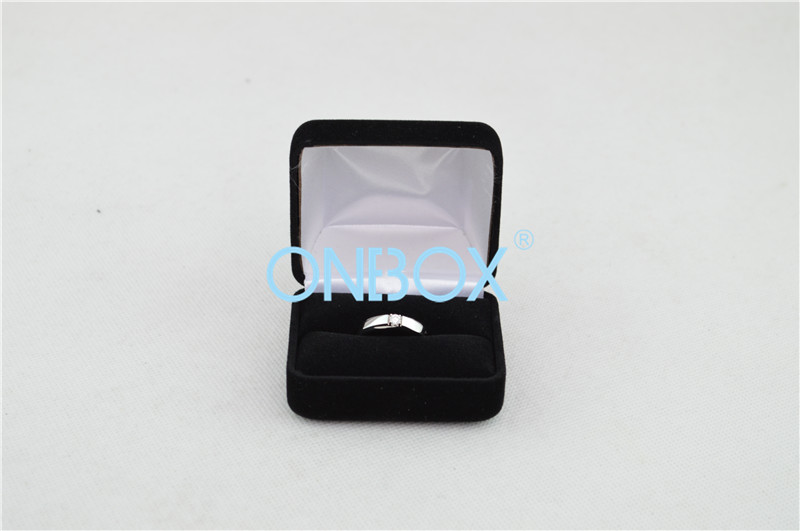 Personalized Metal Single Finger Ring Box In Black Long Hair Velvet
