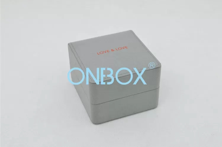 a. Plastic box wrapped with quality grey velvet for both exterior and interior along with matched decorative stitching ;